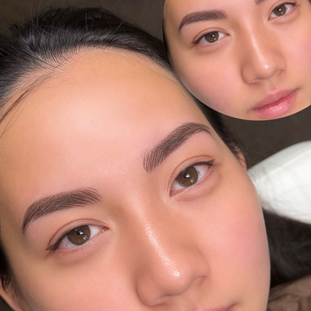 This technique is one I find I do for most clients who request microblading. the combo brow is a mix of powder and hair strokes. The powder acts as a background to the hair strokes, giving the brow a more dense, naturally defined appearance. The results are subtle, yet the brows look freshly filled without ever looking "filled in". The combination of hair strokes and powder gives the brows a natural and polished look.